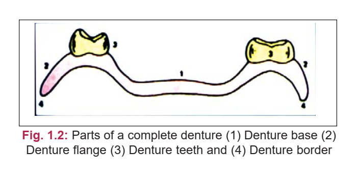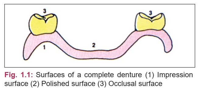 A complete denture is a complex prosthesis composed of distinct parts and surfaces, each with a specific function.